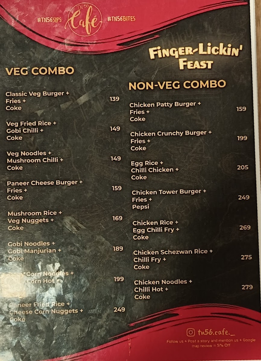 Welcome to TN56 Cafe, a charming spot located on Bhavani Road in Perundurai, Tamil Nadu. This cozy cafe is a perfect blend of delightful ambiance and delectable fare, making it an ideal destination for family and friends.